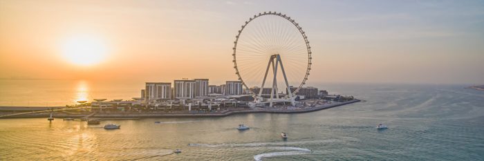 Bluewaters Island est la plus récente île artificielle de Dubaï, située à seulement 300 mètres des côtes sablonneuses de JBR et de la marina de Dubaï. Le projet de 6 milliards d'AED (1,6 milliard de dollars) a été développé par le géant immobilier Meraas. La communauté se compose d'une zone à usage mixte, des réside Toutes les propriétés résidentielles de l'île font partie du complexe Bluewaters Residences, qui se compose de 10 bâtiments de 7 et 15 étages hors sol :